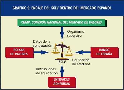 Esta entidad se encargará de comprobar, con todos los participantes en el sistema de liquidación (Sociedades y Agencias de Valores, Bancos y Cajas de Ahorro), la conformidad de los datos necesarios para la liquidación, a continuación asentará los valores en la entidad designada por el cliente y emitirá las instrucciones para que se carguen o abonen los efectivos correspondientes en las cuentas que las entidades tienen abiertas a tal efecto en el Banco de Espaņa.
