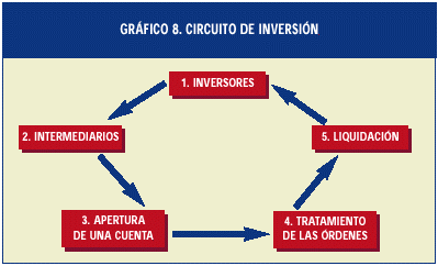 Desde el punto de vista del inversor, cabe destacar que Sociedades y Agencias de Valores son los únicos intermediarios financieros que se dedican exclusivamente a las operaciones relacionadas con el mercado de valores. Nuestra legislación identifica la capacidad de otras entidades financieras para administrar valores, gestionar carteras o tramitar órdenes hacia las sociedades y agencias, pero no para intermediar directamente en el mercado. Los Bancos y Cajas de Ahorro son las entidades que, dada su amplia red, están en contacto directo con un mayor número de inversores. También otros intermediarios, como las Sociedades Gestoras y los Corredores de Comercio, pueden recibir órdenes de clientes y transmitirlas a los miembros del mercado para su ejecución. En definitiva, el acceso más directo y especializado al mercado de valores lo brindan las Sociedades y Agencias de Valores y Bolsa. Cuando el inversor suscriba el contrato de apertura de esta cuenta deberá cerciorarse de las comisiones que le serán de aplicación y del ámbito de servicios contenidos en su relación con el intermediario. Con el creciente auge de Internet, muchas entidades y brokers han comenzado a ofrecer sus servicios a través de este medio, con la ventaja que para los clientes supone en cuanto a comisiones se refiere. Éstas, que deben unirse a los cánones de bolsa, han disminuido considerablemente si se opera a través de la red, siendo en la actiualidad más baratas que si se realiza por teléfono o acudiendo a la oficina. Esta opción puede facilitar a los inversores el seguimiento de sus carteras en cada momento. Al margen de la mera administración de los valores, el inversor puede desear un nivel de asesoramiento superior, por lo que los intermediarios ofrecen la posibilidad de suscribir contratos de gestión a través de los cuales el intermediario decidirá la compra o venta de los valores concretos según el comportamiento del mercado y de las pautas de inversión establecidas por el cliente. En esencia, el cliente debe recibir el detalle de las operaciones ejecutadas, los derechos económicos devengados por sus valores, las operaciones financieras que afecten a los mismos, la composición y la valoración trimestral y anual de la cartera. Las órdenes deben estar firmadas por el cliente, aunque se admite también la emisión telefónica de órdenes, siempre que el intermediario haya instalado un sistema de grabación para las mismas. En la actualidad, algunas entidades permiten a sus clientes enviar órdenes a través de Internet, con un formato prediseñado y suficientes elementos de seguridad. Las ordenes deben caracterizarse por su claridad y han de contener siempre una serie de condiciones: identificación del inversor y la clase de valor, sentido de la orden (compra o venta), plazo de vigencia, precio y volumen de ejecución. Una vez formalizada la orden, se desencadena un proceso de ejecución y confirmación muy rápido. La tecnología actual permite que cualquier inversor, con independencia de su emplazamiento geográfico, tenga las mismas oportunidades de acceder al mercado. En los valores del mercado continuo, toda la operación no llevará más de unos cuantos segundos, siempre que el inversor esté dispuesto a comprar o vender al precio disponible en ese momento en el mercado. La liquidación de operaciones bursátiles es gestionada por una entidad denominada Servicio de Compensación y Liquidación de Valores (SCLV). Todos los datos de contratación, junto con las instrucciones de liquidación son trasladados desde el mercado continuo a la SCLV. Esta entidad se encargará de comprobar, con todos los participantes en el sistema de liquidación (Sociedades y Agencias de Valores, Bancos y Cajas de Ahorro), la conformidad de los datos necesarios para la liquidación, a continuación asentará los valores en la entidad designada por el cliente y emitirá las instrucciones para que se carguen o abonen los efectivos correspondientes en las cuentas que las entidades tienen abiertas a tal efecto en el Banco de España.