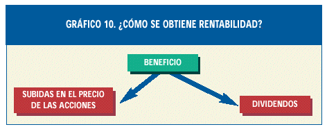Si una persona es propietaria de títulos que valen 10 euros cada uno y que le generan un dividendo anual de 0,5 euros por acción, estará consiguiendo una rentabilidad del 5% procedente del dividendo, pero su rentabilidad total dependerá también de lo que suceda con el precio de estas acciones en la cotización diaria de la Bolsa.