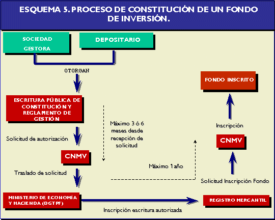 Los pasos a seguir para la constitución de un fondo de inversión son los siguientes:- En primer lugar, es necesaria una autorización por parte de la Dirección General del Tesoro y Política Financiera (DGTPF), tramitada a través de la CNMV.
