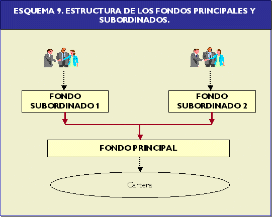 Un caso particular de fondos de fondos son los Fondos de inversión mobiliaria subordinados (FIMS) y principal (FIMP), también llamados Fondos Master(principal)-Feeder (subordinado). En éstos, varios fondos de inversión subordinados invierten en un mismo fondo de inversión principal (sus partícipes son los fondos de inversión subordinados), de tal forma que el gestor del fondo principal puede agrupar el patrimonio y la gestión de varios fondos subordinados en uno sólo. Los fondos principales creados por la gestora no se ofrecen directamente al público.